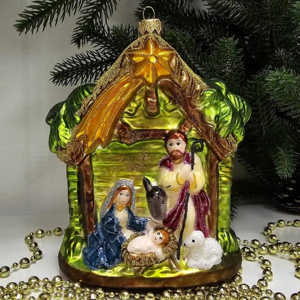 Стеклянная ёлочная игрушка "Вертеп" от Irena-Co – это изысканное украшение, которое станет ярким акцентом на вашей новогодней елке. Ручная роспись каждой детали придает ей уникальность и неповторимый шарм.
