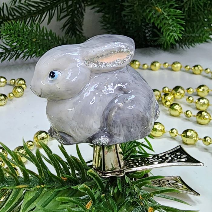 Технические характеристики Стеклянная елочная игрушка Зайчик на прищепке