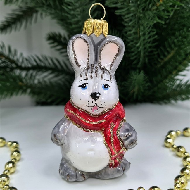 Технические характеристики Стеклянная елочная игрушка Зайчик в шарфе