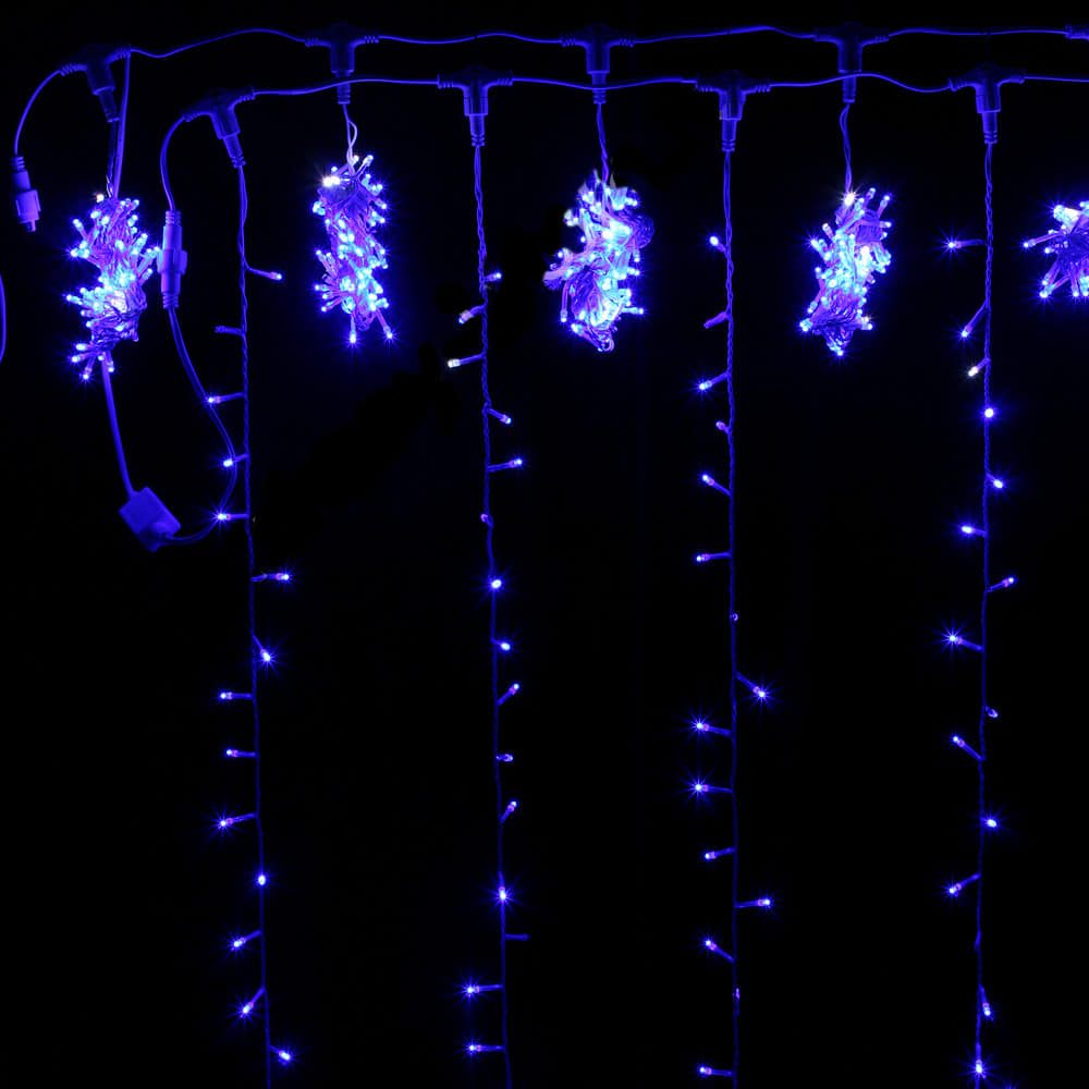 Занавес светодиодный уличный мерцающий IP44 800 л. 2*4 м белый провод синий